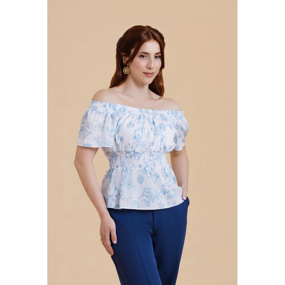 | Conceito Criativo | A “Blusa Ombro a Ombro Rainha Branca” é uma criação da coleção "Brumas de Vênus — Primavera 2025 da Toda Frida". Inspirada na aura etérea da Rainha Branca, esta peça é um convite à leveza e à delicadeza. As cores claras e o toque suave da estampa exclusiva remetem à serenidade e à esperança que a personagem representa em meio ao caos de Wonderland. Com modelagem que valoriza os ombros à mostra, cintura marcada e estampa exclusiva repleta de símbolos do conto, é uma blusa romântica e poética, perfeita para mulheres que carregam a doçura como forma de força. |