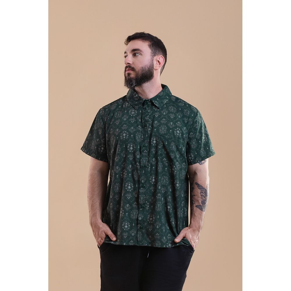 | Conceito Criativo | O Camisa Terra-Média — Lothlórien Green é uma criação da coleção "Brumas de Vênus — Verão 2026". Após o sucesso da nossa camisa Pokémon Phantom Crush para o público masculino, apresentamos este modelo com o mesmo design, mas agora com estampa exclusiva inspirada no universo de O Senhor dos Anéis e em modelagem unissex. O nome Terra-Média homenageia o mundo lendário criado por Tolkien, um lugar de magia ancestral, coragem e jornadas épicas. Em Lothlórien Green, o tom remete à serenidade mística do reino élfico guardado por Galadriel, traduzindo conexão com natureza, fantasia e aventura. Uma peça pensada para quem carrega histórias, imaginação e personalidade até nos detalhes do dia a dia. |
