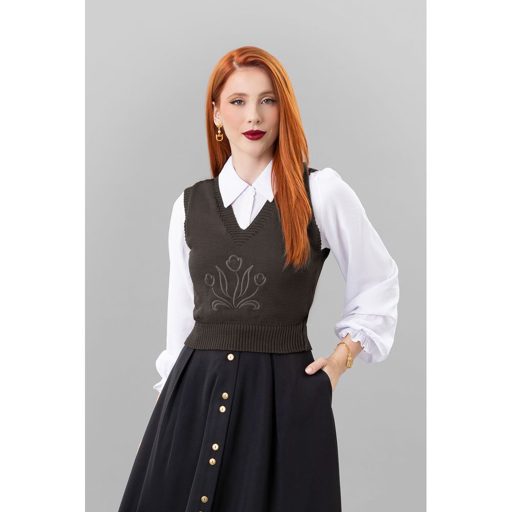 | Conceito Criativo | O "Colete Unique Tricot Flores de Aconite - Brown" é uma criação desenvolvida para a Coleção Futuras Relíquias - Inverno 2025 Toda Frida. Inspirado nos tradicionais coletes de tricô usados pelos alunos de Hogwarts, vem agora para trazer um toque de magia e estilo para o seu acervo Toda Frida. O bordado floral, feito com flores de acônito (ou aconite), faz referência à professora Pomona Sprout e à Herbologia de Hogwarts. Essas flores, usadas em poções poderosas como a Mata-Cão e a Wideeye, adicionam um charme misterioso e um simbolismo único à peça. O colete é feito em tricô de alta qualidade, possui um decote em V e acabamento canelado nas cavas, barra e decote, oferecendo um ajuste confortável e um visual atemporal. Pensado para compor diferentes produções com alfaiataria, e até mesmo com jeans em uma proposta mais casual. É perfeito para quem deseja uma peça cheia de personalidade, que mistura estilo clássico e elementos mágicos do universo Potterhead. |