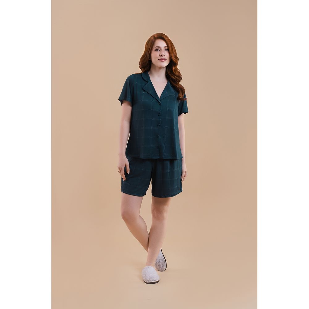 | Conceito Criativo | O "Conjunto de Pijama Slytherin — Deep Green" é uma criação da coleção Brumas de Vênus — Verão 2026 da Toda Frida. Com um design já muito amado pelas clientes, ele retorna ainda mais confortável, confeccionado em malha suede com toque aveludado e acolhedor. A estampa exclusiva traz o mesmo padrão das echarpes do Inverno 25: um xadrez minimalista inspirado na casa Sonserina, adornado por símbolos icônicos da saga — as Relíquias da Morte, os óculos e a cicatriz de raio do Harry e o Pomo de Ouro. Para um toque de exclusividade, o modelo ainda apresenta o logo de gatinho TF, tornando-o uma peça encantadora para vestir conforto, magia e inspiração até nos momentos de descanso. |