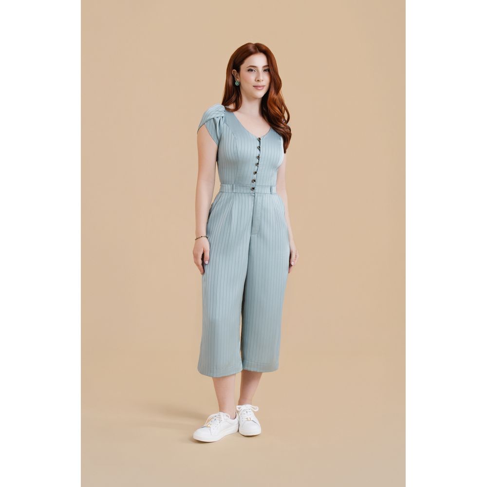 | Conceito Criativo | O “Macacão Pantacourt Alice — Dusty Green” é uma criação da coleção "Brumas de Vênus — Primavera 2025 da Toda Frida". Inspirado nos figurinos de "Alice Através do Espelho", o macacão traz referências diretas aos botões centrais dos vestidos usados por ela e ao delicado listrado maquinetado de uma das produções usadas pela personagem. Apresentamos uma releitura surpreendente do Universo Wonderland em uma peça única e atemporal, com uma combinação perfeita entre o charme do comprimento pantacourt com o caimento sofisticado de um tecido levemente acetinado. Versátil e cheio de personalidade, é perfeito para transitar do dia a dia a ocasiões especiais, vestindo mulheres que valorizam moda com história, conceito e autenticidade. |