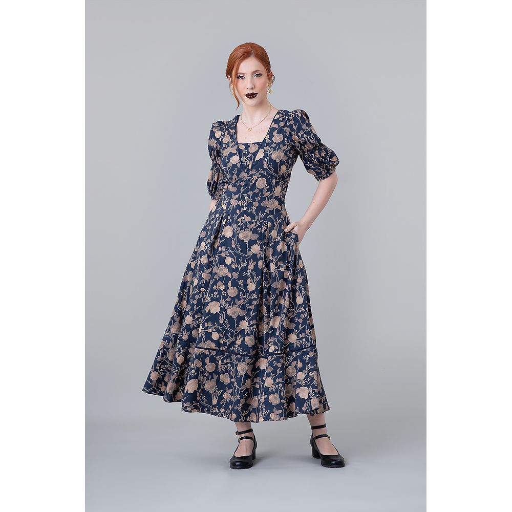 Conceito Criativo | A “Saia Super Midi Julieta” é uma criação desenvolvida para a Coleção Futuras Relíquias — Inverno 2025 da Toda Frida. Inspirada nos figurinos da festa dos Capuleto no clássico filme "1968", traduz a elegância atemporal das mulheres dessa história — especialmente Julieta e sua mãe. Sua estampa exclusiva carrega a delicadeza do floral vintage, com efeito dourado sutil, além de símbolos poéticos como o coração ornamentado, o frasco de veneno e a frase “...and with a kiss, I die”, eternizando o desfecho trágico desse amor proibido. A paleta e o estilo do floral foram cuidadosamente inspirados no casaco de Mercúrio (amigo de Romeu) e na echarpe usada por Julieta na cena da igreja, ambos do filme de 1968. Disponível nas cores Dark Blue e Brown, é uma peça que transforma romance, arte e memória em moda. |