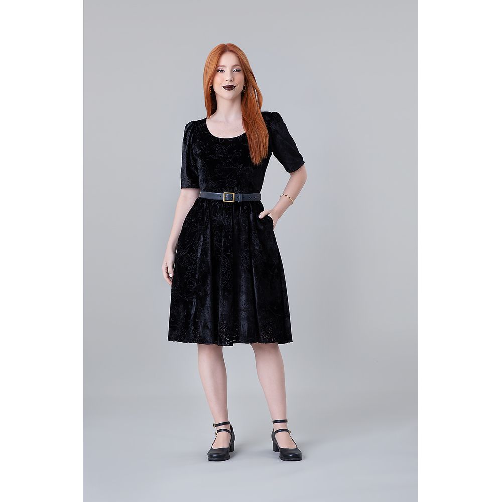| Conceito Criativo | O "Vestido Chanel de Veludo Floral Arwen - Black" é uma criação desenvolvida para a Coleção Futuras Relíquias - Inverno 2025 Toda Frida. Inspirado nos figurinos da belíssima Arwen, personagem símbolo de força e elegância na trilogia "O Senhor dos Anéis", de J.R.R. Tolkien, este vestido é confeccionado em veludo floral e possui decote cruzado nas costas que remete aos trajes élficos dos filmes. As mangas bufantes, o comprimento chanel e o decote em U reforçam o toque de elegância e romantismo presentes no design exclusivo da Toda Frida. Esta é a peça perfeita para as fãs de Tolkien que buscam um visual sofisticado e encantador, unindo o universo da moda à fantasia de forma inspiradora. |