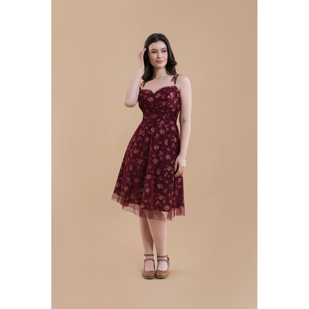| Conceito Criativo | O "Vestido Chanel Lily — Gryffindor Red" é uma criação da coleção Brumas de Vênus — Verão 2026 da Toda Frida. Parte da Cápsula Especial de Natal, ele une o universo romântico e retrô da TF à força e coragem da casa Grifinória. A estampa exclusiva é uma atualização da versão lançada na coleção Primavera/Verão 2025, agora em um novo tom de vermelho, com composição mais limpa e sofisticada, destacando as papoulas. Entre os elementos temáticos, estão a mandrágora, as poções Amortentia e Felix Felicis, o livro Moste Potente Potions, o brasão da casa, a varinha de Harry Potter e a icônica paleta vermelha que simboliza bravura e paixão. |