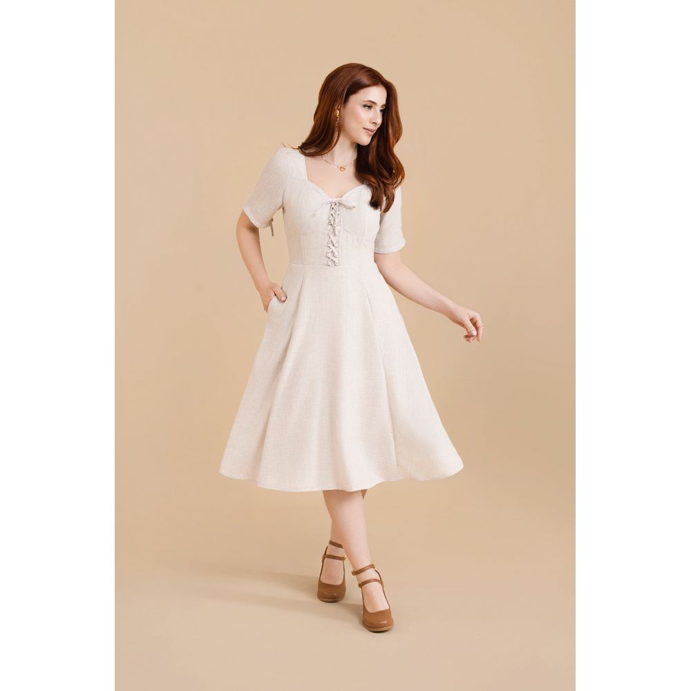| Conceito Criativo | O Vestido Midi Ciri - Quaker é uma criação da coleção "Brumas de Vênus — Primavera 2025 da Toda Frida". Inspirado no vestido longo branco usado por Ciri na série The Witcher, a peça traduz a força e a delicadeza da personagem em uma releitura autoral. O design traz amarrações nos braços e no tronco, elementos que remetem à sua estética marcante, enquanto o tom areia conecta-se à paleta de cores presente tanto na série quanto no jogo, refletindo a naturalidade e intensidade de Ciri. Com modelagem midi que valoriza a silhueta e garante movimento, este vestido é uma peça única, criada para mulheres que desejam expressar sua essência e carregar em cada detalhe a poesia de histórias que atravessam o tempo. |