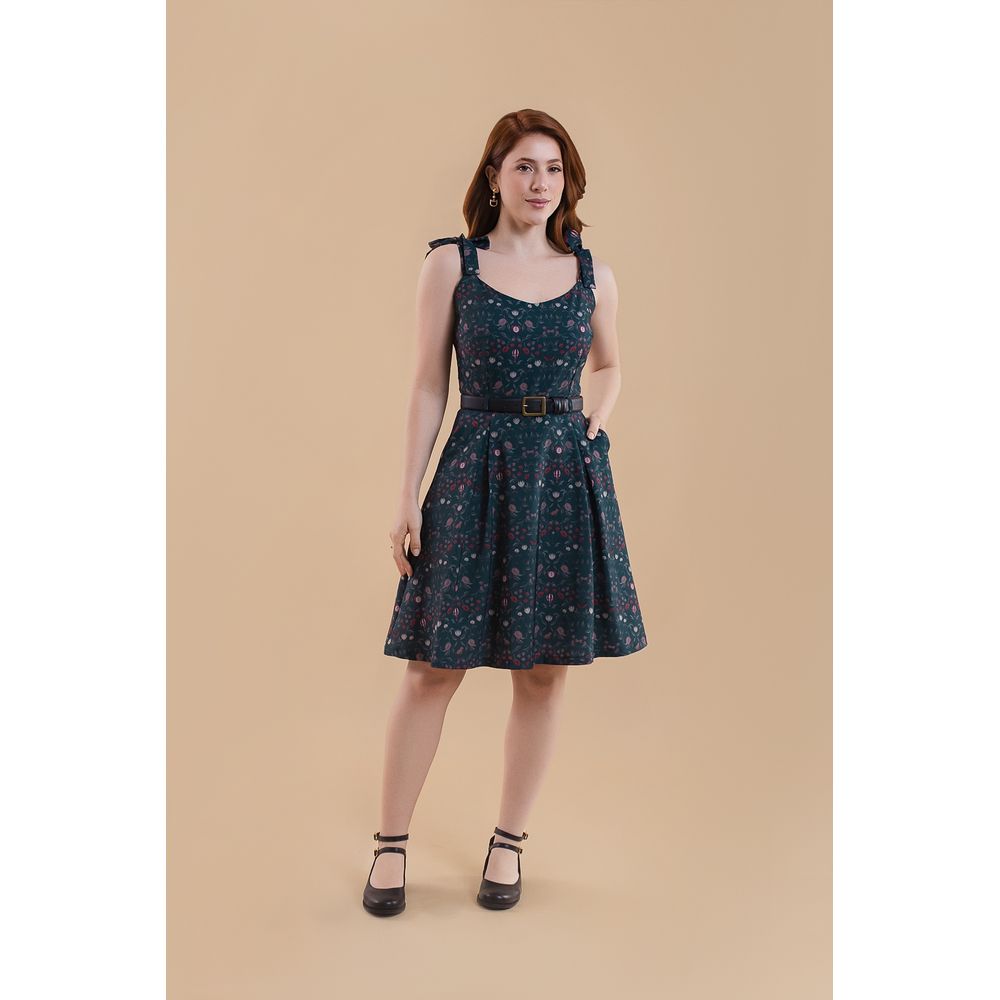 | Conceito Criativo | O "Vestido Petit Chanel Cidade das Esmeraldas — Deep Green" é uma criação da coleção Brumas de Vênus — Verão 2026. Inspirado nas salopetes delicadas usadas por Glinda e Dorothy em Wicked (2024) e O Mágico de Oz (1939), ele traduz feminilidade e encanto com alças ajustáveis, decote em V e bolsos funcionais. A estampa exclusiva TF adiciona poesia ao visual, enquanto o cós marcado cria uma silhueta vintage e romântica. A tonalidade Deep Green homenageia a Cidade das Esmeraldas e a força icônica de Elphaba, unindo magia, coragem e fantasia em uma peça única. |
