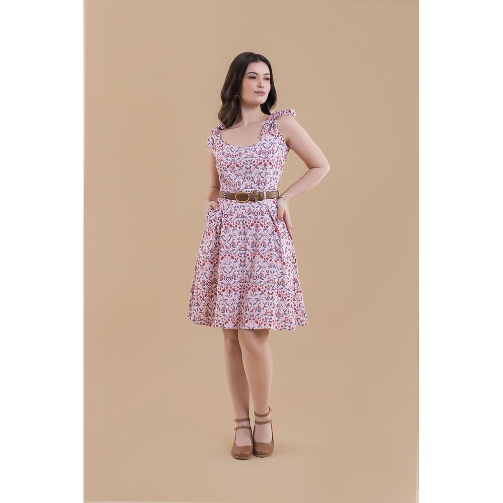 | Conceito Criativo | O "Vestido Petit Chanel Cidade das Esmeraldas — Light Rose" é uma criação da coleção Brumas de Vênus — Verão 2026. Inspirado nas salopetes usadas por Glinda e Dorothy nos clássicos Wicked (2024) e O Mágico de Oz (1939), ele resgata a delicadeza e o romantismo vintage com alças ajustáveis, decote em V e bolsos funcionais. A estampa exclusiva TF reforça o charme nostálgico da peça, enquanto o cós marcado acentua a feminilidade. Em Light Rose, o vestido remete suavidade e sonho, como um toque de magia da Cidade das Esmeraldas em tons de encanto e poesia. |